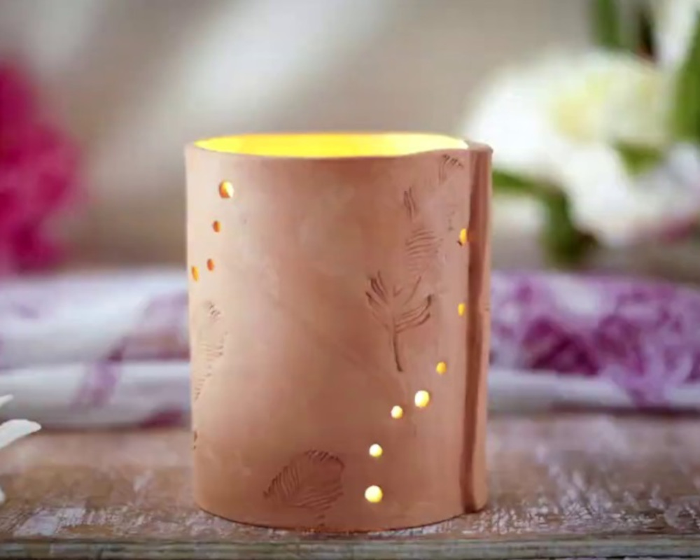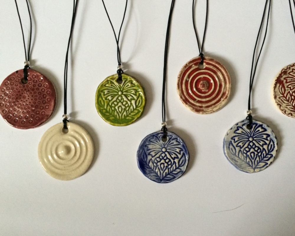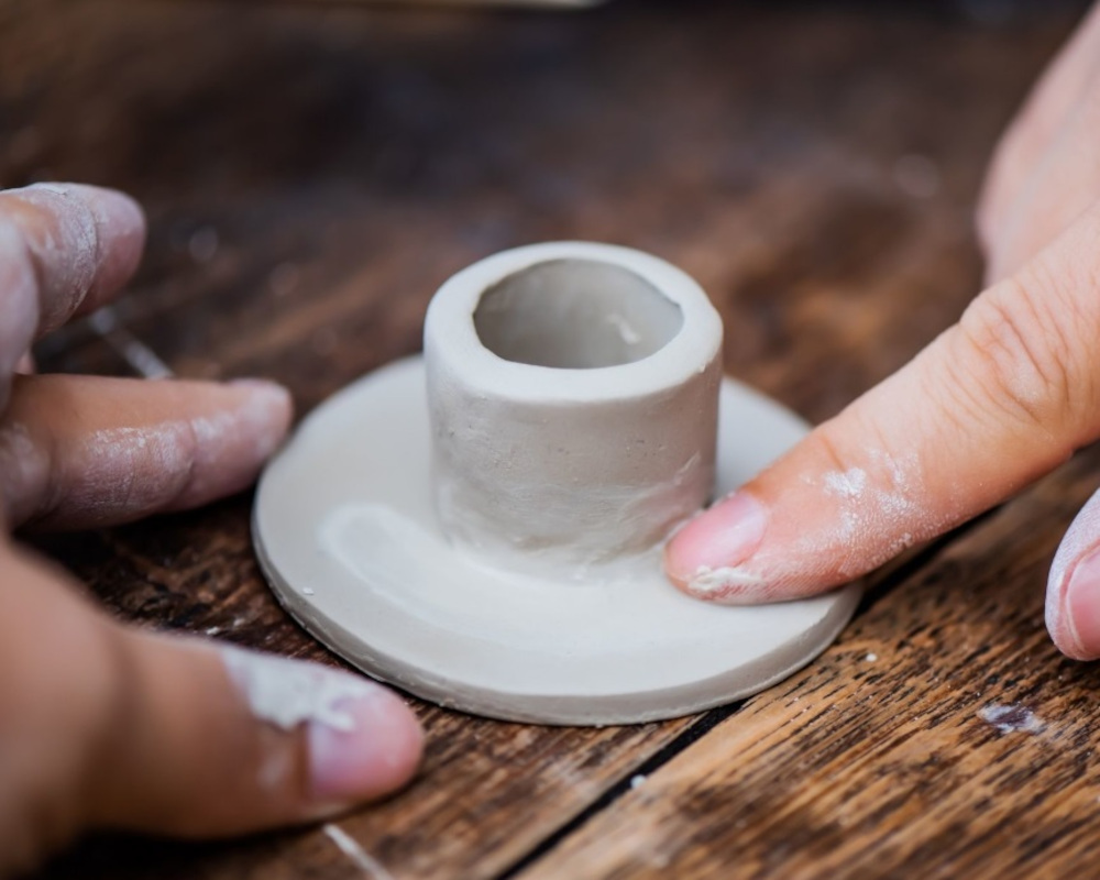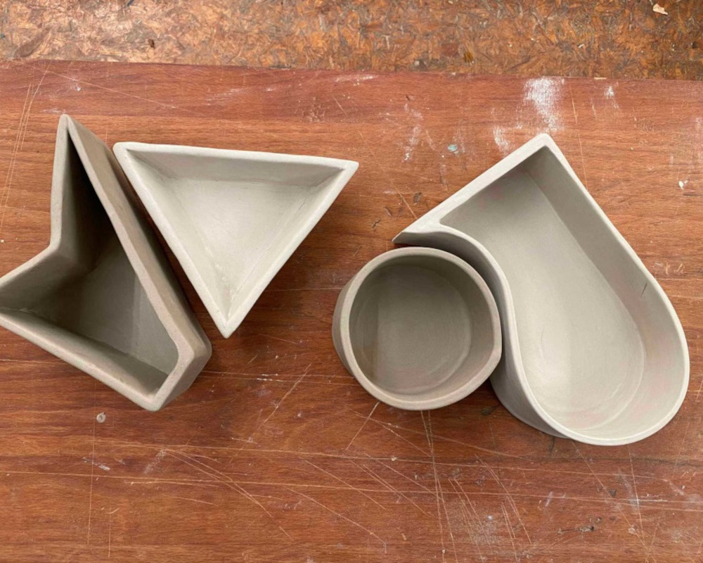 ![]() → zurück zur Kursübersicht Holz, Papier, Ton Keramik - Plattentechnik Mithilfe der Plattentechnik lassen sich ohne großen Aufwand flächige Tonstücke herstellen und miteinander zu dreidimensionalen Objekten verbinden. Herstellung der Tonplatte(n) Sie benötigen: eine Spanplattenunterlage, ein Nudel- oder Rundholz zum Ausrollen des Tons und zwei Holzeisten mit gleicher Höhe. Für die Weiterbearbeitung der Tonplatten kommen je nach Projekt unterschiedliche Modellierwerkzeuge zum Einsatz. Vorgehen: Ton mithilfe des Schneidedrahts abschneiden und auf der Unterlage mit dem Nudelholz ausrollen. Um eine gleichmäßige Stärke der Tonplatte zu erhalten, legen Sie die beiden Holzleisten rechts und links neben die Tonmasse. Rollt man nun mit einem Rundholz über die Tonmasse, kann der Ton an keiner Stelle dünner als die Stärke der Holzleisten werden. → Tutorial 1 (Youtube) Der erste Teil des Tutorials behandelt die Herstellung einer Tonplatte. Danach wird gezeigt, wie man durch Umwickeln einer Pappröhre mit der Tonplatte ein zylindrisches Gefäß anfertigen kann. Auch das Zusammenfügen zweier Tonteile wird erklärt – und das alles auf Österreichisch! ![]() Marmorierung Sie können einen schönen Effekt erzielen, indem sie zwei (lieber nicht mehr als zwei) Tonsorten mit unterschiedlichen Farben mischen. Dazu walkt man jeden Ton für sich zu je einer Tonplatte aus, legt beide Platten übereinander und rollt sie ein. Dann schneidet man ca. 1 cm dicke Scheiben ab, legt sie aneinander zwischen die Leisten und rollt sie zu einer durchgehenden Fläche aus. Verarbeitung der Platte(n) 1 Einfache Platte Sollen Anhänger, Untersetzer, Teller und andere Objekte angefertigt werden, die nur aus einer flachen Platte bestehen, wird der Ton mit einem Messer in der entsprechenden Form ausgeschnitten. Der Zuschnitt kann frei Hand erfolgen oder mithilfe einer Schablone, die aufgelegt und vorsichtig nachgefahren wird. Bei kleineren Objekten wie Anhängern können auch Ausstechförmchen für Plätzchen und ähnliche Gegenstände als Hilfsmittel zum Einsatz kommen. 2 Gebogene Platte Eine gebogene Platte erhält man, indem man das Werkstücke zum Trocknen in eine runde Schale legt. ![]() → Tutorial 2 (Youtube) Im ersten Teil wird gezeigt, wie eine Platte strukturiert und in eine halbrunde Form gebracht werden kann (im zweiten Teil bekommt die Schale noch Füßchen – da wird es etwas komplizierter, diese Arbeitsschritte sind aber nicht unbedingt notwendig). Und Ihr Englisch können Sie auch noch trainieren! 3 Schale Soll aus der Tonplatte eine Schale werden, die zwar auch nur aus einer Tonplatte besteht, aber einen modellierten Rand hat, wird der Ton ebenfalls zuerst zugeschnitten. Dann wird der Rand geformt, indem er nach oben gebogen, an den Ecken umgeklappt oder anderweitig in Form gebracht wird. Anschließend wird Zeitungspapier, zusammengeknüllte Frischhaltefolie, eine Holzleiste, ein Stück Karton oder ein anderer Gegenstand so unterlegt, dass der Rand gestützt ist und in der modellierten Form erhalten bleibt. 4 Zusammenfügen mehrerer Platten Mehrere Tonplatten lassen sich zu einem Gefäß zusammenfügen, indem die Verbindungsstellen beider Platten – z.B. mit einer Gabel – angerauht und mit Tonschlicker verbunden werden. Wichtig: die senkrechten Teile werden immer auf die Bodenplatte montiert, nicht um sie herumgelegt. Zusätzlich sollte an der Innenseite des Gefäßes ein dünner Tonwulst in die Kante zwischen Boden und Wand gesetzt und verstrichen werden. Dies sorgt für eine stabilere Verbindung und senkt das Risiko von Rissen in diesem Bereich. Idealerweise werden die vorgefertigten Tonplatten nicht sofort verarbeitet, sondern erst leicht getrocknet, sodass sie beim Zusammensetzen besser ihre Form bewahren. Bei Objekten mit relativ hohen senkrechten Teilen (z.B. einer Vase) müssen diese gestützt werden – z.B. kann man einen Zylinder herstellen, indem man eine Tonbahn um eine leere Toilettenpapierrolle wickelt, siehe dazu noch einmal das → Tutorial 1 (zweiter Teil) Strukturierung der Oberfläche Die Oberflächen der Tonplatten können durch verschiedene Techniken strukturiert werden. Je nach dem, wieviel Druck dazu ausgeübt werden muss, ist es sinnvoll, die Platte(n) bereits vor dem Zusammensetzen zu bearbeiten. Man kann z.B. Muster einritzen, z.B. parallele Linien mit einem Kamm Dekor hineindrücken: alles, was eine kräftig strukturierte Oberfläche aufweist, kann auf den Ton gelegt und eingedrückt werden (ggfs. mit dem Nudelholz darüberrollen), sodass das Muster sich negativ im Ton abzeichnet: ein Blatt, Farn, eine Tortenspitze oder Stoff mit Spitzenmuster, Stempel, Korbgeflecht, ein Drahtgitter…; es gibt auch eigene → Strukturroller; gut geeignet für Schmuck (s.u.) Motive herausschneiden, frei oder mithilfe einer zuvor angefertigten Schablone; z.B. für ein Windlicht, s.u. Motive ausstechen, z.B. mit einem Plätzchenausstecher Applikationen anbringen: Zierelemente mit Tonschlicker ankleben; diese können frei geformt werden oder selbst in Plattentechnik hergestellt sein; s.u. das Türschild Einige Ideen Türschild: ![]() Kerzenhalter: ![]() Windlicht: ![]() Schmuck (ggfs. kleines Loch für Kette oder Textilschnur nicht vergessen): ![]() zwei → sich ergänzende Gefäße: ![]() Mosaik, wie hier von → Invader, einem französischen Street-Art-Künstler, der weltweit Keramiken an Hausfassaden anbringt: ![]() Sie können natürlich die Plattentechnik auch mit einer anderen Technik (z.B. freiem Modellieren) kombinieren. |